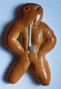 *Der Weckmann, den es immer nur ganz kurz um St. Martin gab. Er hatte die Arme so in die Hüften gestemmt, dass es eine Lücke zwischen Arm und Oberkörper gab. Die Künstlerin hat sogar mal ein Bild von einem gemacht:
